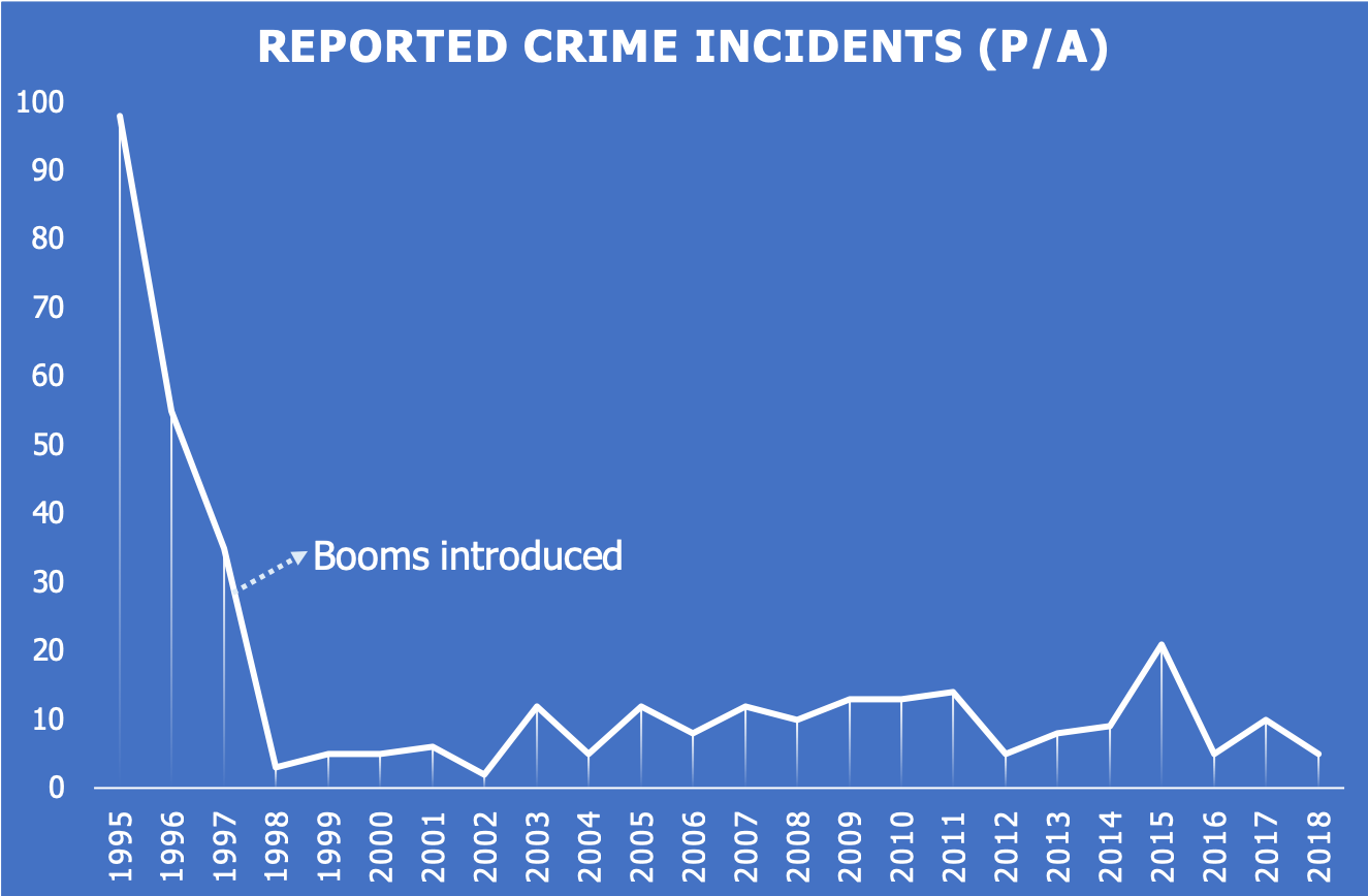 But this changed when the booms were introduced - together with 24-hour guarding.